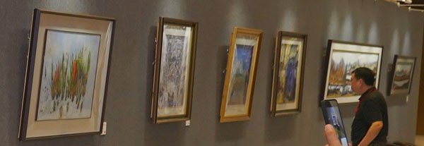 黄建南在其展品前接受媒体及艺术爱好者的采访