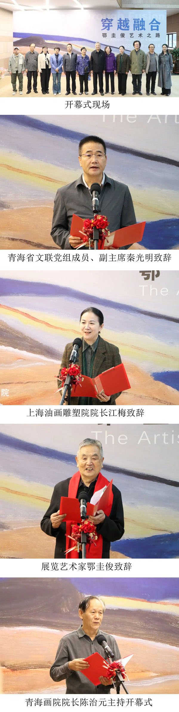 9月18日,“穿越融合——鄂圭俊艺术之路”展览在青海美术馆正式开幕。本次展览由青海省文学艺术界联合会、上海油画雕塑院共同主办,青海美术馆、青海省美术家协会、青海画院联合承办,系统呈现了鄂圭俊先生跨越六十载的艺术创作历程,多维度展示其从青海高原至黄浦江畔的融合与超越之路。青海省文联党组成员、副主席秦光明,上海油画雕塑院院长江梅,展览艺术家鄂圭俊先生出席开幕式并致辞。上海油画雕塑院办公室主任郦霞,上海油画雕塑院美术馆馆长傅军,青海省文艺评论家协会主席马钧,青海美术馆馆长王筱丽,青海画院执行院长李忠盛以及上海油画雕塑院同仁、青海省文艺界、新闻媒体界百余人参加开幕式,青海画院院长陈治元主持开幕式。