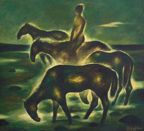 这个时期,东方的与西方的、传统的与现代的、感性的与理性的,不断发生碰撞、试探、调整,直到找到一种和谐而有力的共存方式。文化层面的“融合”,绝对不是一次性的行为,而是一个持续精进、逐渐深化的过程。早期的融合可能更侧重于视觉语言层面,随着实践的不断推进,他的融合上升到了精神层面。他笔下的形式语言既是画面构图与审美需要,更重要的是承载了更厚重的对生命、自然、信仰的哲学思考。在上海,他将自己的作品放入一个完全不同的话语体系中进行展示和评判,他想证明其作品不仅具有“民族特色”,更具有现代性和普世性的艺术价值,他想用作品本身的力量去赢得尊重和认可。由此我坚信,孤独感反而滋养了这种向内探索的深度。