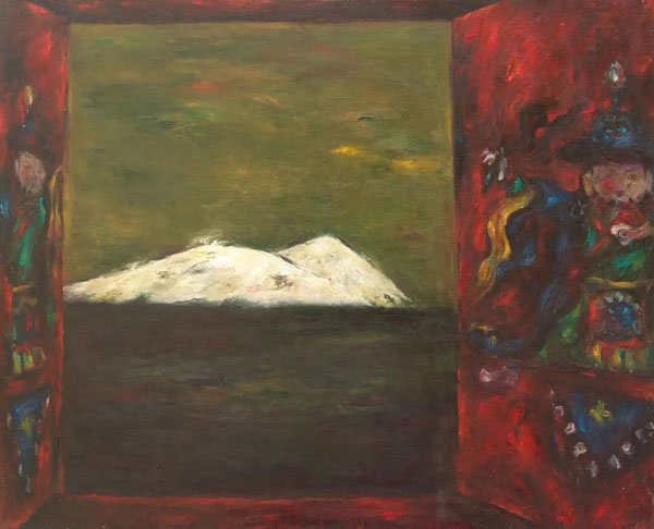 于是我们看到,1980年代后期与整个1990年代,鄂圭俊先生虽然仍以青藏高原作为创作的母题,但他显然在逐渐放弃早期的叙事性和民族风情,画面中依然有可辨识的高原人物、牲畜、宗教符号,然而,出现了更多抽象的色块、线条和构成,营造出一种介于现实与幻境之间的独特氛围,具有超现实的神性与灵性,呈现出一种强烈的表现主义特征,以及浓郁的神秘主义色彩。
