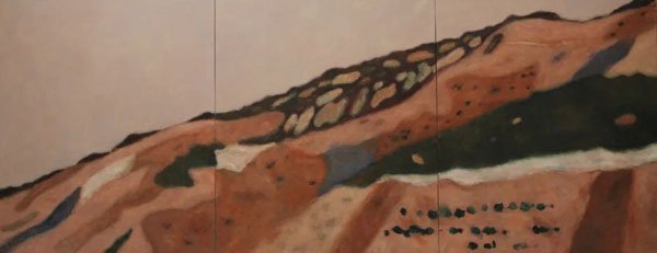 不同于南方大自然的婉约秀美,西北的大自然,多是巍峨险峻的,如刀劈斧凿,棱角分明。它们赤裸裸地矗立于天地之间,岩石裸露,寸草难生,唯有风雪在其上刻下岁月的痕迹。远望如铁铸的屏风,在烈日下泛着青黑或暗棕的光泽,自有一种不假修饰的粗犷之美。山间少有云雾缭绕,一切皆明朗而坦荡,毫无遮掩。这种既雄浑又壮阔,还有些苍凉的气象,让人感觉渺小的同时,又心生敬畏之情。如何用现代的艺术语汇来恰好其分地表现这些自然的物象和内心的感受?