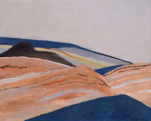 第三,精进于艺术境界。鄂圭俊先生的《大自然系列》,有些相对工整平面,有点硬边抽象的意味;有些就相对感性与浑朴,有一种特别厚重的精神气象。他一直在理性的思考与感性的直觉之间徘徊和平衡,没有走向完全的抽象,而是始终在追求一种“似与不似”与“恬淡宁静”的艺术境界。这种艺术境界让其形可辨,其质可感,既有现代艺术的形,又有中华文化的魂,给观众预留了得以进入和理解他的艺术的通道,也为研究者解读他的艺术留下了丰沛的空间和可能性。