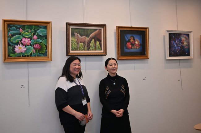 除了宏大的主题,展览中还有许多笔触细腻、色彩灵动的花卉与动物题材作品。这些作品展现了画家深厚的造型功底和对生命之美的敏锐捕捉能力。无论是娇艳欲滴的玫瑰,还是憨态可掬的动物,在她的笔下都被赋予了生命的温度和情感的表达。通过对这些微小生命的描绘,艺术家呼吁人们关注身边的美好,珍惜当下的和平与安宁。每一幅画作都像是一个小小的窗口,邀请观众驻足、凝视,并从中获得片刻的内心平静与慰藉。
