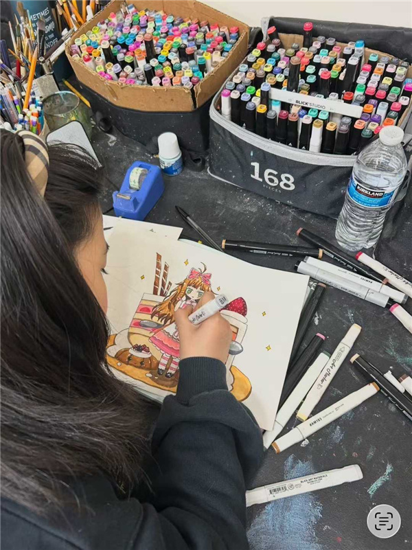 在此次新春义务教学中,张彤卫精心筹备画具材料,以亲切耐心的态度为孩子们示范讲解,鼓励大家大胆想象、自由创作。课堂上,她将中华传统美学与西方艺术理念有机融合,让孩子们在笔墨色彩中感受东西方文化魅力,既提升绘画技能,也培养审美与自信。不同族裔、不同年龄的孩子们欢聚一堂,用画笔勾勒新春愿景,现场洋溢着节日的喜庆与艺术的温情。