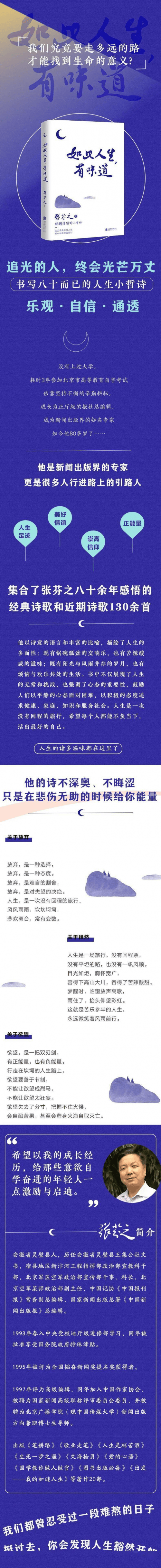 《如此人生,有味道》是一部深刻探讨人生意义与价值的诗集。它以诗意的语言和丰富的比喻,描绘了人生的多面性:既有锅碗瓢盆的交响乐,也有苦辣酸咸的滋味;既有阳光与风雨并存的岁月,也有烦恼与欢乐共处的生活。书中不仅展现了人生的无常和挑战,也强调了心态的重要性,鼓励人们以平静的心态面对困难,以积极的态度追求健康、家庭、知识和服务社会。
