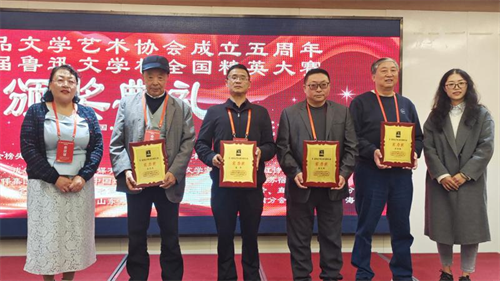 副主席兼秘书长作家诗人黄卉宣读了第二届鲁迅文学杯全国精英大赛获奖人员名单,继之协会领导和大赛评委老师为本次大赛中的获奖代表分别颁发了荣誉证书、奖牌和奖杯,并合影纪念。