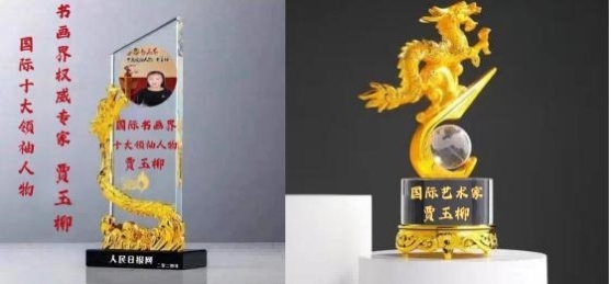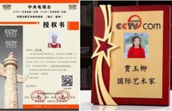 2014年中国共产党中央委员会党校,荣获2013年度全国“十佳优秀退休干部”称号荣誉证书。世界华人艺术家联合会荣获2014年“中国当代十大名家”称号荣誉证书。中国政协画院,担任政协画院(副院长之职)荣誉聘书2014年。中国国家书画院,国家艺术奖金奖荣誉称号“国家艺术大师荣誉称号”2014年。中国国际经济技术合作促进会品牌促进中心《全国书画行业A级AAAAA服务单位,温州市贾玉柳书画店》2014年。中华人民共和国国家版权局《著作权登记证书》经中国版权保护中心审核“书法作品沁园春雪”书法版权保护证书;2014-6-01029号。中华人民共和国国家版权局,著作权登记证书,经中国版权保护中心审核,美术作品《钓鱼岛》国画版权,登记证号:2014-6-01029。世界华人艺术品评估鉴定委员会,ISC2014艺术品评审润格为:国画(作品)500至550亿英镑1平方尺,ISC2014艺术品评审润格为:书法(作品)450至500亿英镑1平方尺,证书档案编